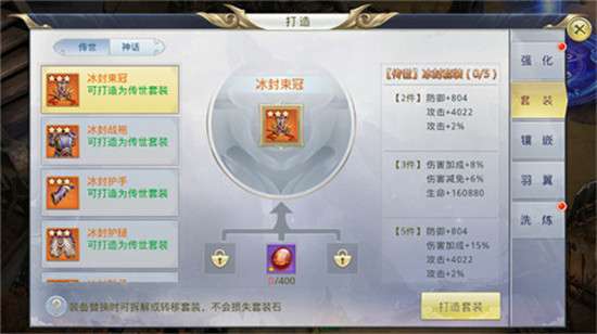 3、锻造套装所需材料为套装石和升级套装石,套装石可以通过【挑战BOSS—南巫禁地】或商城获得。