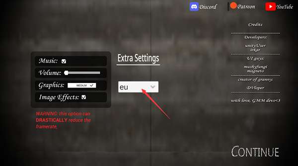 2、然后记住一定要和朋友选择一样的服务器地区,选择好了点击“continue”;(如果一直在加载就需要开启加速器了)。
