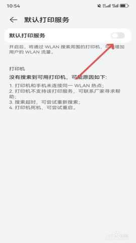 4、进入默认打印服务页面,点击打开默认打印服务开关按钮。