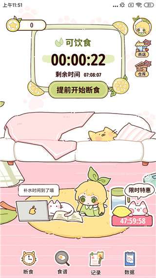 3、健康知识共享:提供丰富的健康减肥知识,帮助用户科学地进行轻度禁食。