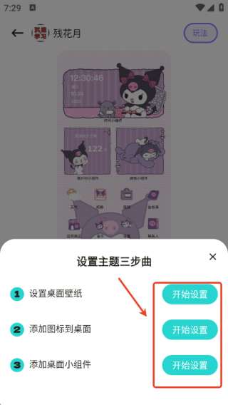 4、安装需完成三个步骤:一是设置桌面壁纸,二是添加图标到桌面,三是添加小组件,按顺序点击 “开始设置”,即可完成安装。