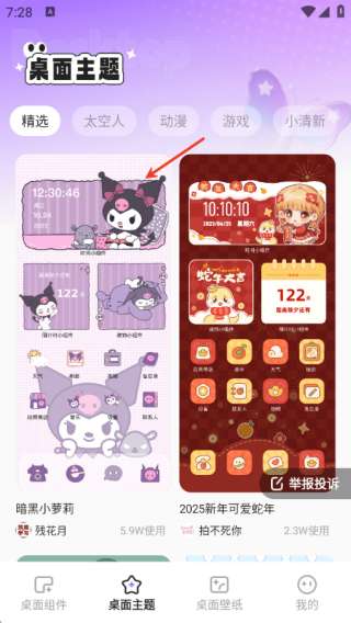 2、桌面主题板块包含众多精美主题,挑选想要安装的主题并点击进入详情页。