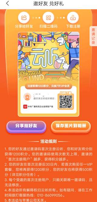 2、系统会生成一个二维码,将二维码发送给好友并让好友注册,即可获得积分和七天会员。