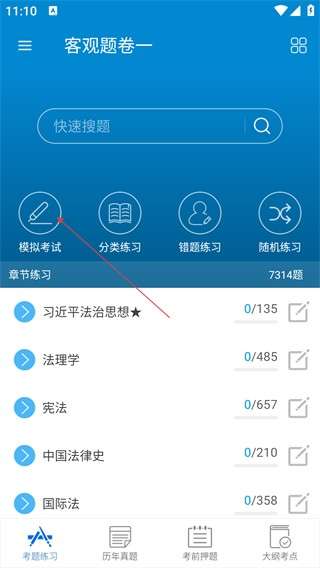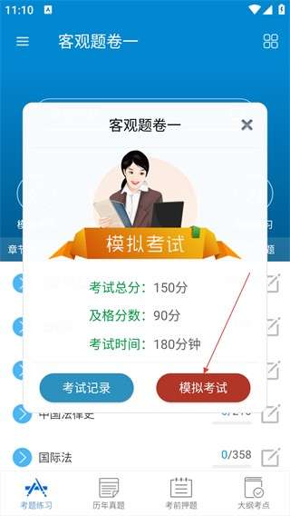 1、点击“模拟考试”进入相应考试功能的选择界面。