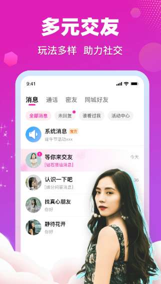 1、实时交流:支持文字、视频聊天等多种交流方式,用户可以自由与喜欢的异性交流,实现实时在线交流。