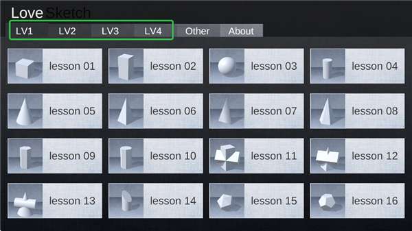 1、进入爱素描中,先选择需要练习的静物,有适合新手的立体几何,也有适合经验者的苹果、雕塑等。