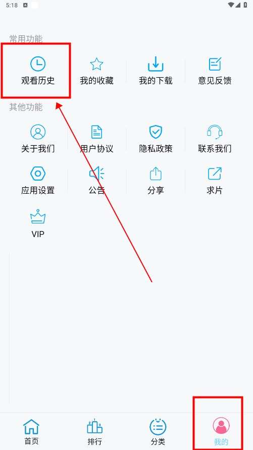 4、如果暂停了剧集,可以在我的观看历史中找到并继续观看。