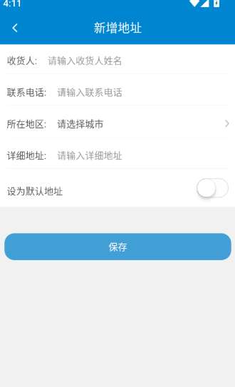 6、最后大家在“新增地址”界面,输入收货人、联系电话、所在地区、详情地址后,点击“保存”按钮就完成了。