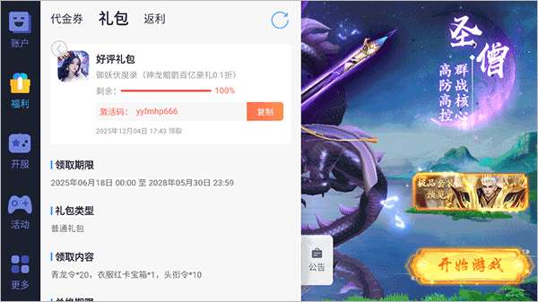 2、然后就可以获得兑换码进行复制使用了。