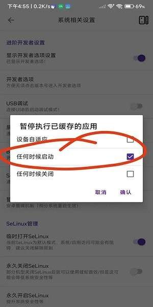 3、点击暂停执行已缓存的应用,勾选任何时候启动。