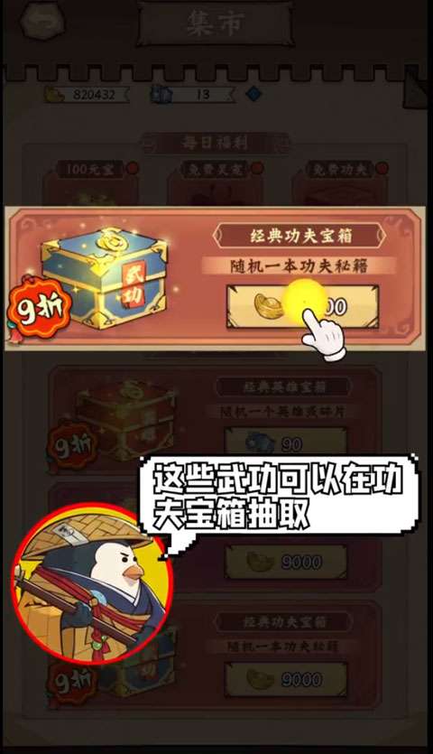 2、使用元宝来收集所有的武术技能。这些技能可以通过抽取功夫宝箱或在武林珍藏中获取得到。当收集齐了全部的64本秘籍之后,就可以利用元宝抽取灵宠宝箱。