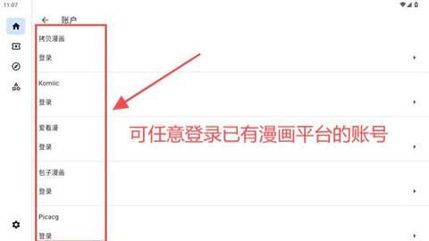 2、然后进入账户登录界面,根据自己的需要选择漫画平台的账户进行登录