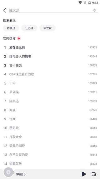 咪咕音乐是一款非常优秀的手机音乐播放软件,拥有全面的音乐榜单,可以为用户呈现很多高人气的音乐歌曲,还提供多样化的音乐类型,随时随地自由筛选查看最新且受欢迎的音乐,方便用户在线听歌播放,能完全满足所有音乐需求,还具有个性化的音乐播放界面设计,用户可以轻松收藏喜欢的音乐歌曲并创建歌单,自由享受优质的音乐播放服务,还能输入音乐名称来搜索查找感兴趣的音乐歌曲,有需要的用户欢迎下载软件吧。