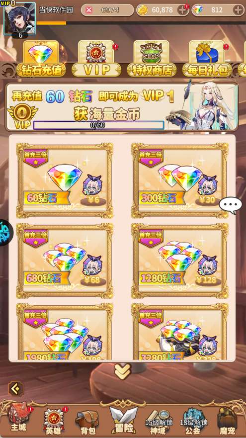 2、全场0.1折,游戏内所有充值享永久0.1折福利!