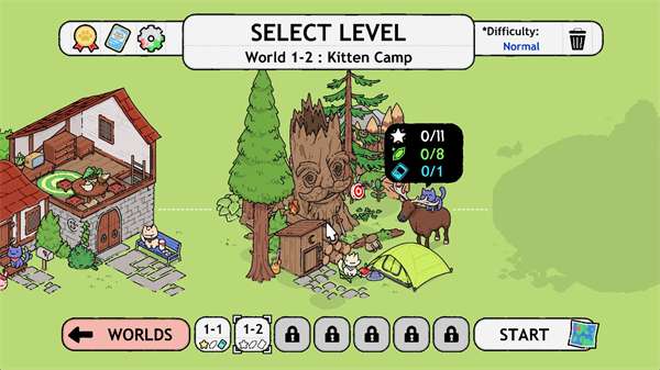 1、进入游戏后滑动屏幕可以选择不同的关卡,选好关卡后点击start按钮开始游玩。