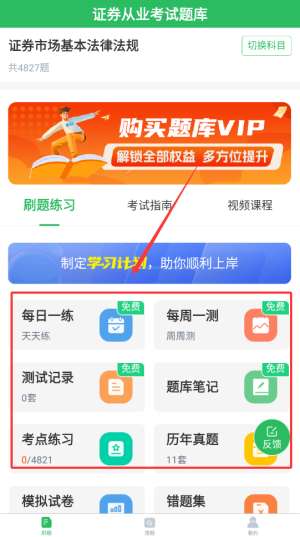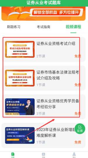 4、所有题库资源都能免费使用,用户无需支付任何费用,就能尽情享受海量的练习内容。与此同时,平台还提供大量精心挑选的视频课程,以直观生动的讲解方式,助力用户更高效地掌握复杂难懂的证券专业知识。