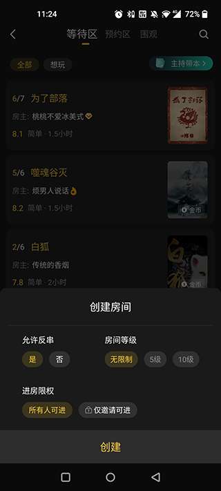 3、设置后房间的参数,反串、房间等级、进房权限等数据。