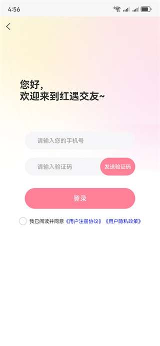 4、输入手机号之后获取验证码登录平台即可开启交友之旅。