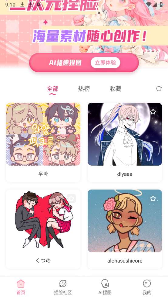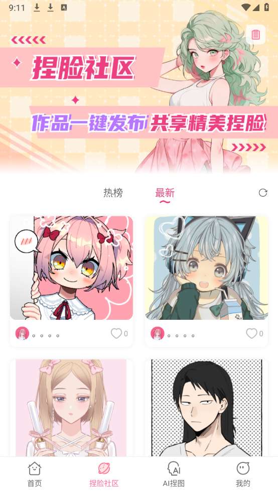 4、进入“捏脸社区”,可以看到别人的作品,点击喜欢的进行收藏。