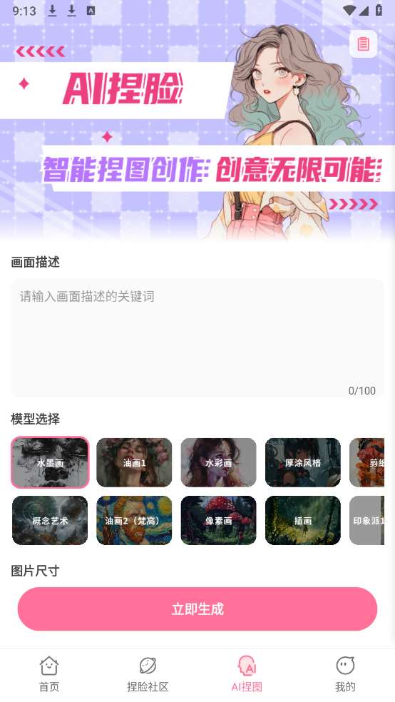 5、在“AI捏脸”板块,输入关键词可以生成你想要的二次元造型哦。