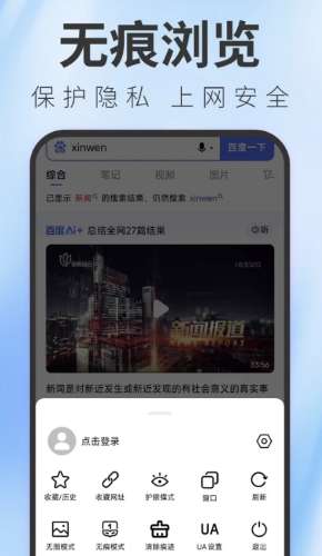 4、无痕浏览 用户可以在无痕迹浏览模式下浏览不同的内容,从而使用户可以快速浏览更多内容。