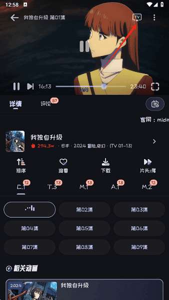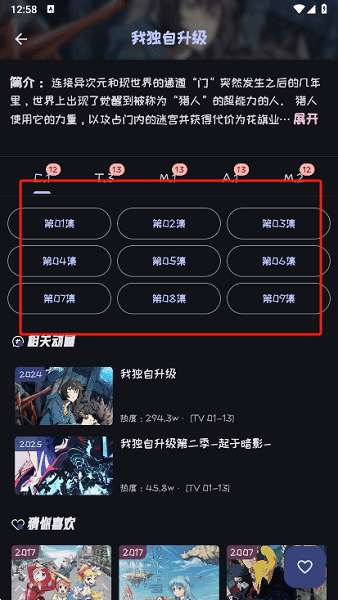 2、搜索动漫后,例如,如果我单独升级并向下滚动以选择我想观看的剧集数量;