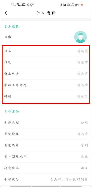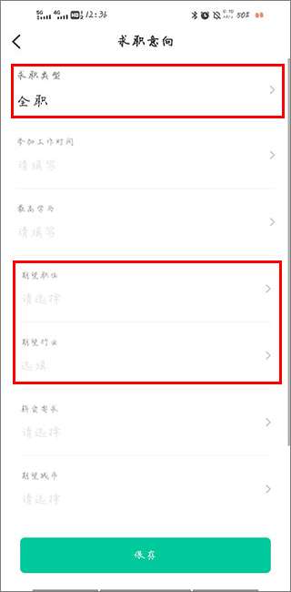 3、填写完表格后,用户可以在我的专栏中编辑他们的求职意向,如全职、兼职、所需行业等。