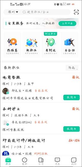 2、功能全面:该提供求职和推荐功能,还提供在线交流和简历提交等各种实用功能,满足用户的多样化需求。