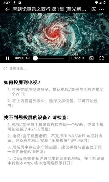3、将设备和手机连接到同一网络,等待手机搜索,一旦匹配成功,屏幕将成功投射。