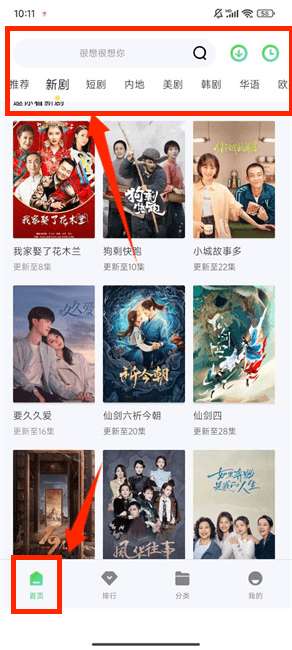 1、启动应用程序后,在主页上,您可以浏览推荐和新剧等类别中呈现的各种类型的电影和电视内容。