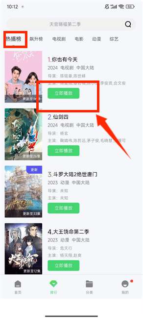 3、切换到热门电视剧列表的排名页面,在那里你可以看到热门节目,如“你今天也有”。点击“现在播放”观看。