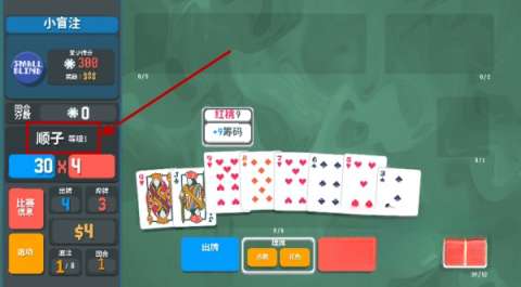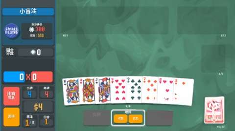 1. 游戏启动后,你的目标是获取筹码来战胜敌方盲注,例如小盲注,只要拿到300筹码就行。