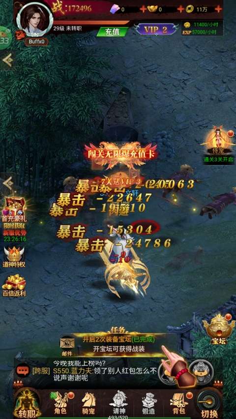 3、跨服战场:加入跨服战场,与其他服务器的玩家对抗,赢得丰厚的跨服奖励。