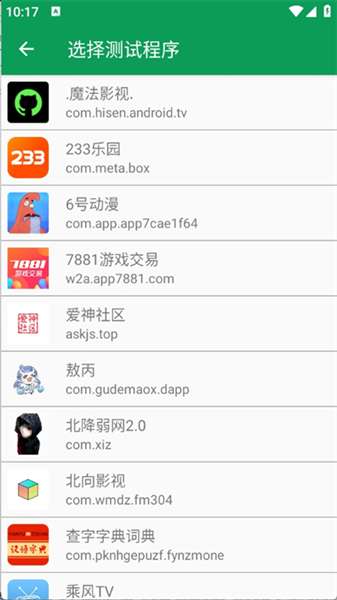 1、进入首页后,选择需要测试的应用程序。
