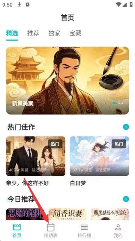 3、若您想知道您所追的漫画今日是否有更新,点击下方导航栏的排期表。