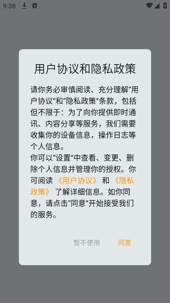1、在本站下载完aoo,点击打开app之后,同意用户协议和隐私政策。