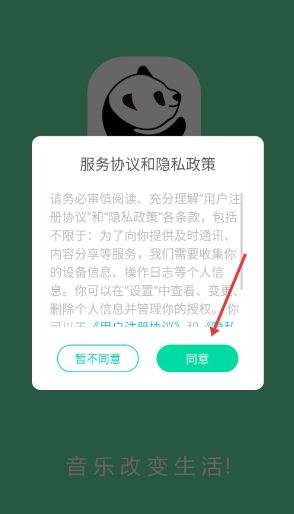 1、打开音乐熊软件,阅读服务协议和隐私政策后,点击同意,进入首页浏览精品课程选试听课学习。