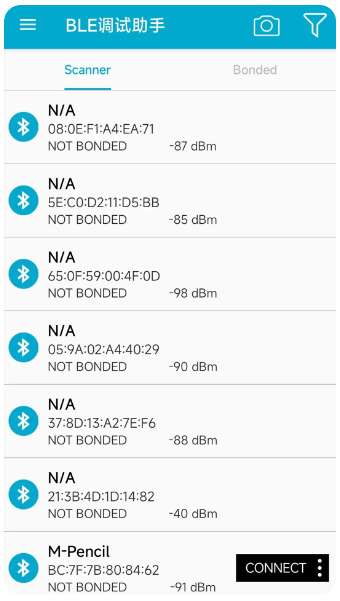 2、通过扫描BLE蓝牙设备mac地址对应的二维码,可以快速连接到设备。