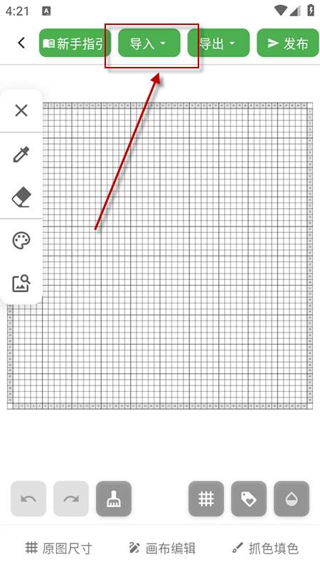 2、若想快速生成模板,点击“导入”上传图片,软件自动转换为拼豆图纸;若想手动设计,点击“画布编辑”,设置画布尺寸后开始创作。