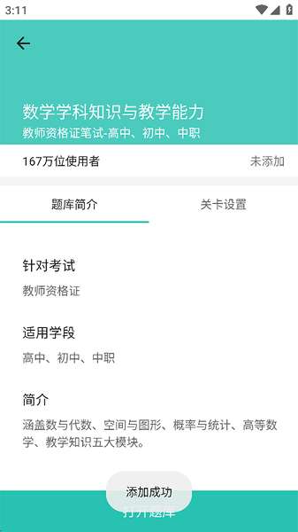4、添加成功,返回题库首页查看新添加的题库即可。