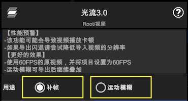 2、然后会看到如下的界面,这里可以选择用途为补帧或者运动模糊。