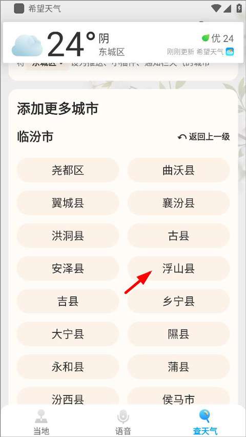 4、打开添加城市的选项,按照省-市-县-乡/镇的顺序逐步找到确切的位置。