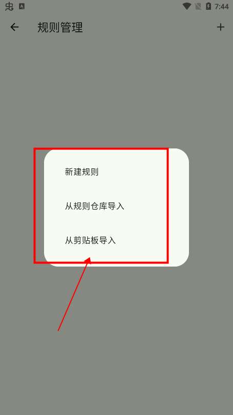 4、在弹出来的页面,选择您添加方式:新加规则、从规则仓库导入、从剪粘板导入。