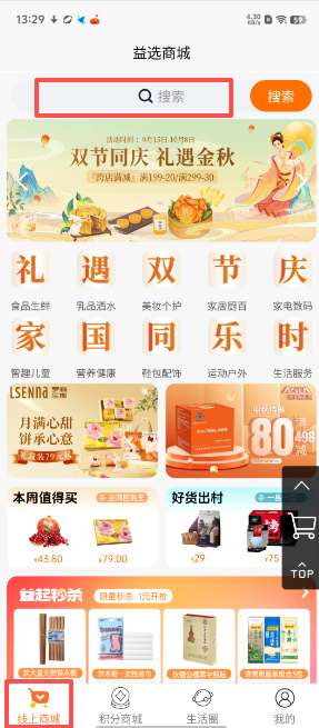 1、打开软件进入“线上商城”页面,找到页面上的搜索框。