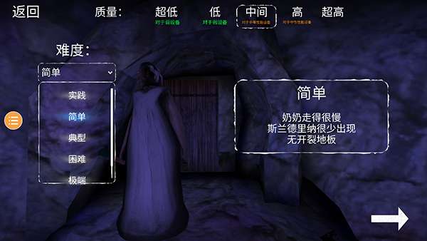 1、进入恐怖老奶奶6游戏可以选择难度来进行游玩。