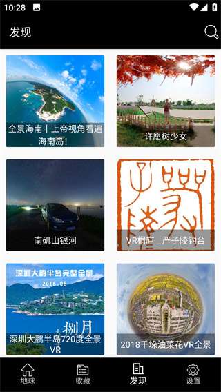 2、点击“发现”进入发现页面,可以看到众多地区的VR全景。