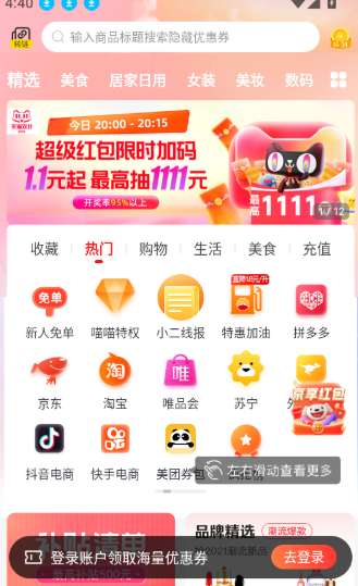3、该软件提供了大量的优惠券。这里可以领取更多的产品优惠券,满足不同用户的折扣需求。
