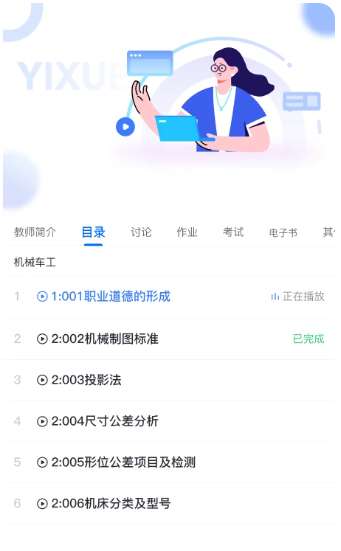 1、学习课程 及时推送为你学习的课程,可以立即观看,立即学习。