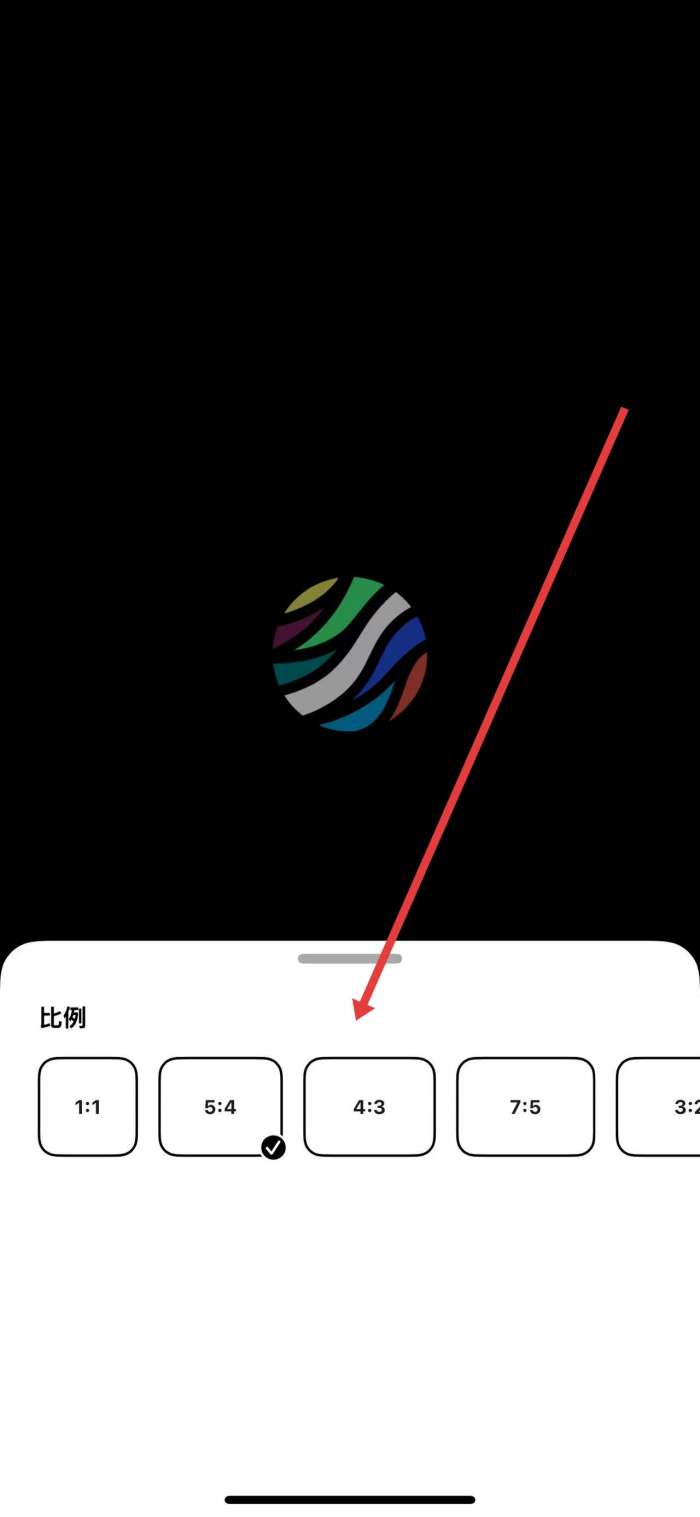 2、在弹出的比例选择界面中,按需点击选择1:1、5:4、4:3等合适的拍照比例。