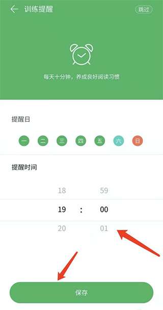 6、您可以在移动双倍速阅读应用程序中设置训练提醒功能。